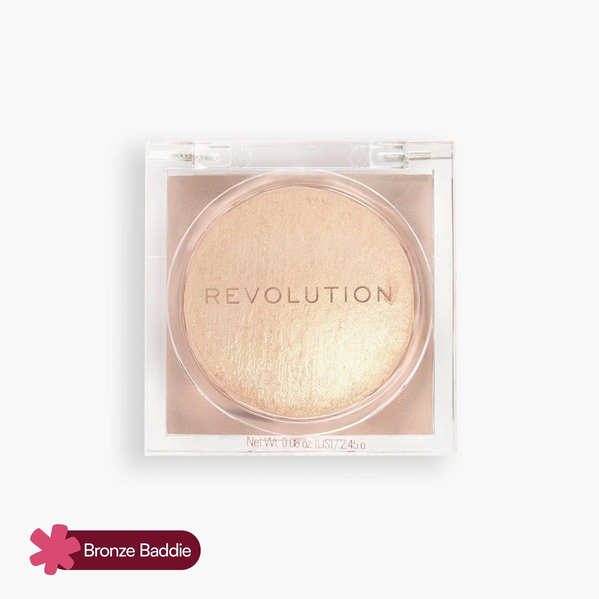 Illuminate your complexion with the Revolution Beam Bright Highlighter. This luxurious silky powder is designed to melt seamlessly into the skin, mimicking the fluidity of a liquid highlighter. The unique formula delivers a soft, luminous glow, enhancing the natural dimensions of your face with a radiant, golden-hour effect. The "Bronze Baddie" shade offers a soft bronze hue, perfect for adding warmth and a sun-kissed finish to any look. Its compact design makes it ideal for on-the-go touc...