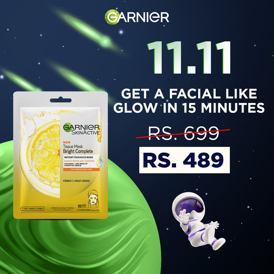 Garnier Skin Active Tissue Mask Light Complete Instant Radiant Mask is a brightening sheet mask designed to deliver an instant glow and even-toned complexion in just 15 minutes. Infused with Vitamin C and Lemon Extract, it targets dullness, dark spots, and uneven skin tone, leaving the skin visibly more radiant and refreshed. The ultra-thin tissue fits closely to the skin to deliver a surge of moisture and active ingredients effectively, making it an ideal quick-fix for t...
